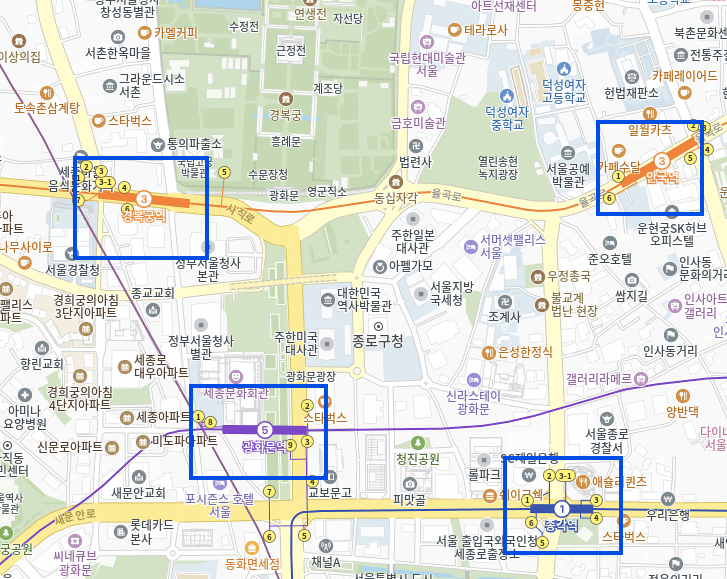 • 5호선 광화문역 2번 출구 → 도보 10분, 세종문화회관 방면 도보 이동