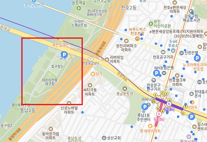 | 위치 | 광나루한강공원 제3주차장 (천호대교 밑, 강동구 풍납동) |
